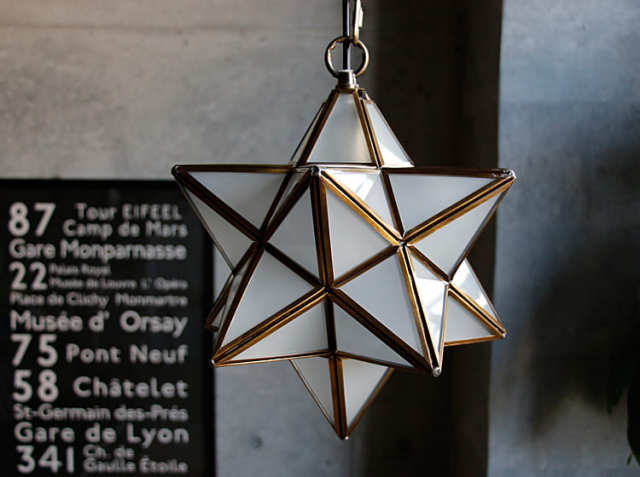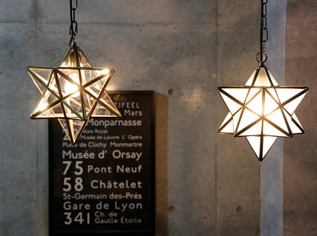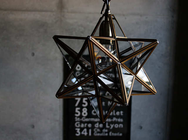 Etoile(エトワール)はフランス語で、「星」という意味。真鍮の素材そのものを生かした、星型ペンダントライトはビンテージ加工の、落ち着いた大人の佇まい。真鍮は、あなたと過ごした時間の経過とともに、少しずつ味わい深い色合いに変化していきます。ガラスは、職人が1つ1つ手作業ではめこんでいる こだわりの照明です。