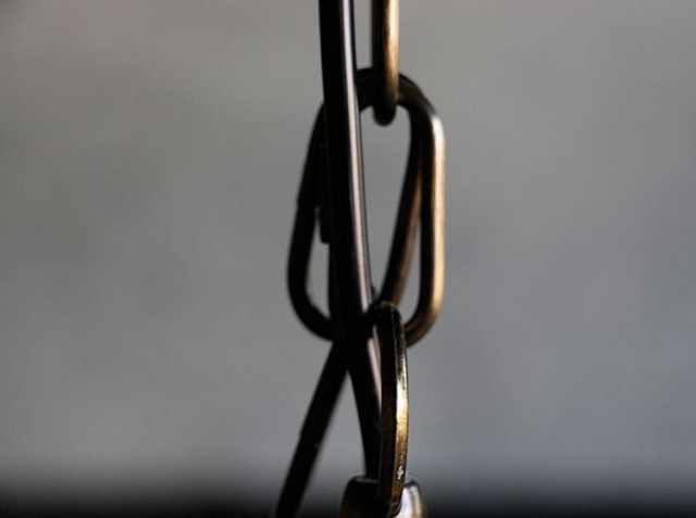 1.5mのチェーン付き。3個のカラビナで長さ調整が可能。