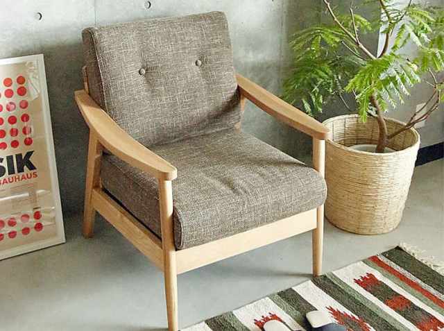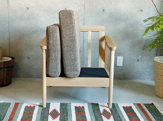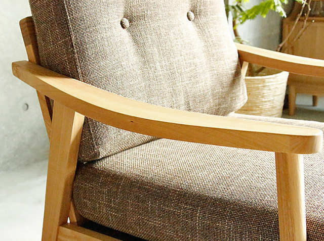 アッシュ木材のナチュラルな風合いと白っぽく美しい木目、それに優しいカラーとファブリックならではの温かみが掛け合わさったHenry(ヘンリー)シリーズの1人掛けソファー。