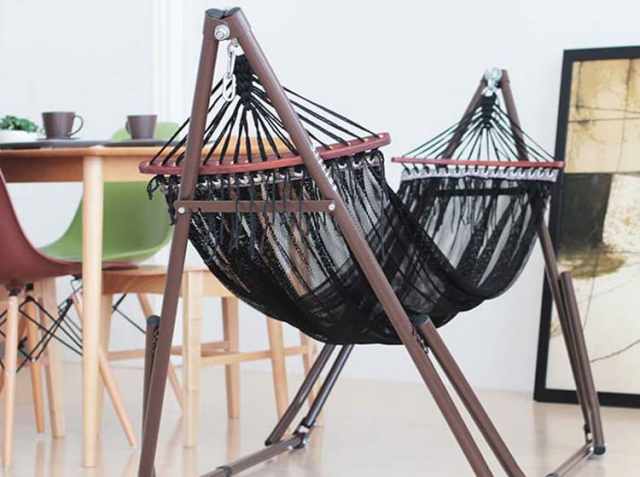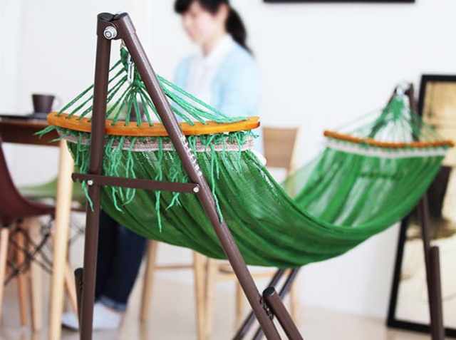 自立式ハンモックで屋外でも屋内でもゆらゆらライフを過ごせますよ。