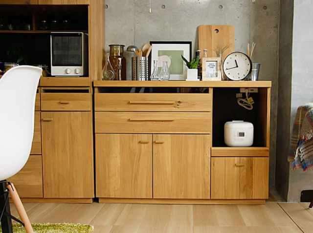 天然木ホワイトオーク材ならではのナチュラルな風合いと驚きの収納力が特徴の、120キッチンカウンター OCTA(オクタ)。