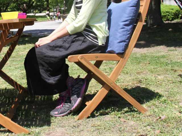座面高は44.5cm。女性の方でも深く腰を掛けても地面に足がつくサイズです。ゆっくりとくつろげる丁度良いサイズですね。