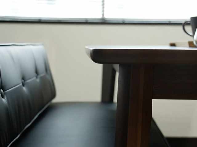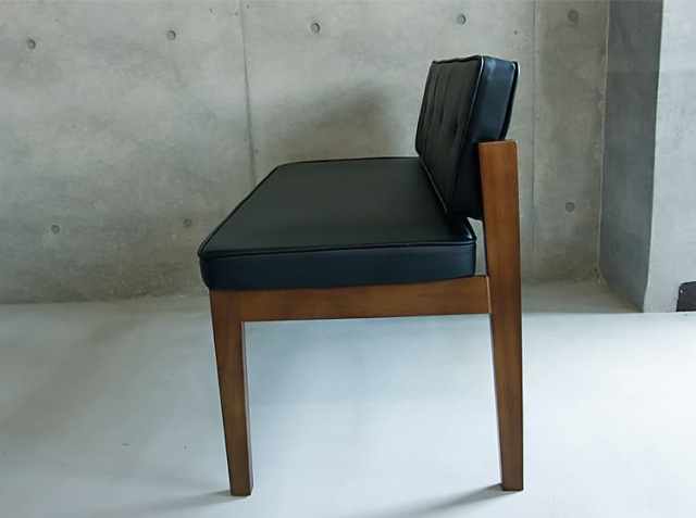 ウォールナット無垢材の深みのあるブラウンと、マットな質感のレザーとの組み合わせが、上品で大人の雰囲気を醸し出すダイニングベンチです。