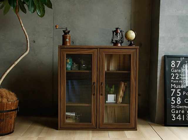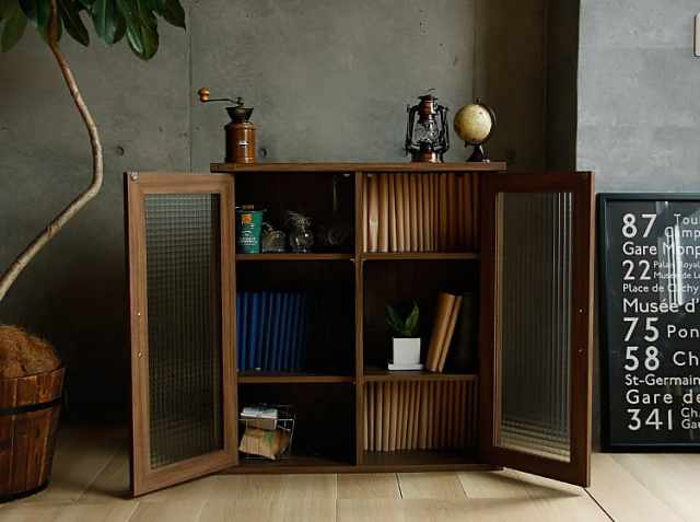 レトロな雰囲気の溢れるクリアガラスは扉内の物を美しくぼかしてくれるので、日用品を置いているだけでもディスプレイのように見えてしまう優れもの!