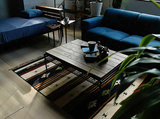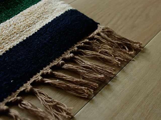 平織り特有の少し色あせた感じのレトロ感を楽しんでいただけるラグマットです。ビスコース70%/コットン30%のサラサラとした肌ざわりとなっています。毛足は短いですので、お掃除も簡単にできますね。