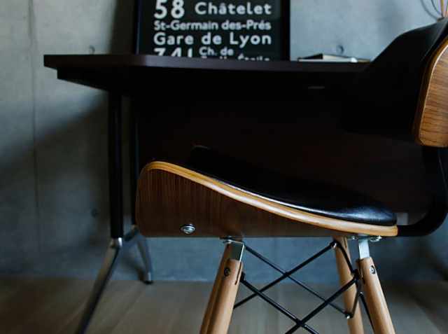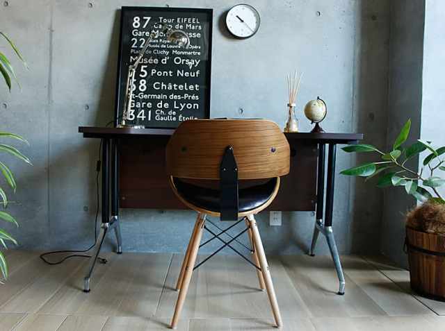 落ち着いた雰囲気のヴィンテージ、ミッドセンチュリ―テイストのインテリアに合わせれば、そこはまさに大人のワークスペースに。バックフォルムもとても艶やかで、インパクトのあるお部屋に変えてくれますよ。