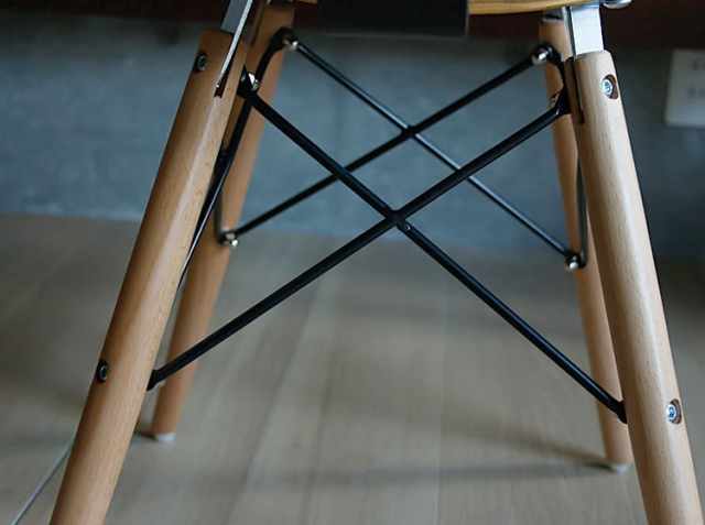細いスチールロッドは、脚の強度のサポートをするだけでなく、デザイン面でもアクセントになっています。