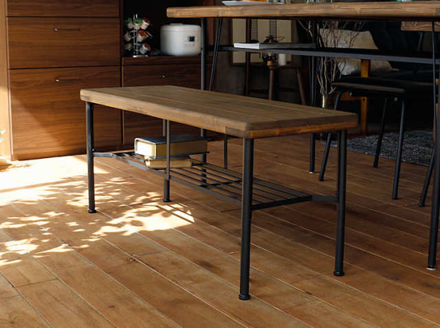 こちらのベンチは食卓以外でも、お部屋の壁側に配置して小物や雑貨を並べるだけで魅せる収納にも使う事ができるディスプレイラックとしてのご使用もおすすめ♪耐荷重も150kgありますので、少し高いテレビボードとしての利用もできますよ