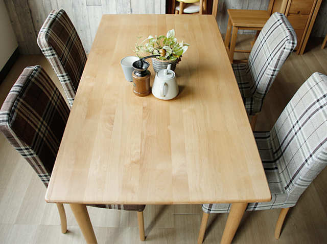 ダイニングテーブル:アルダー材にオイル塗装を施すことで、滑らかな肌触りとなっています。