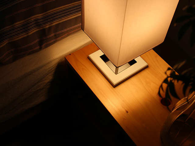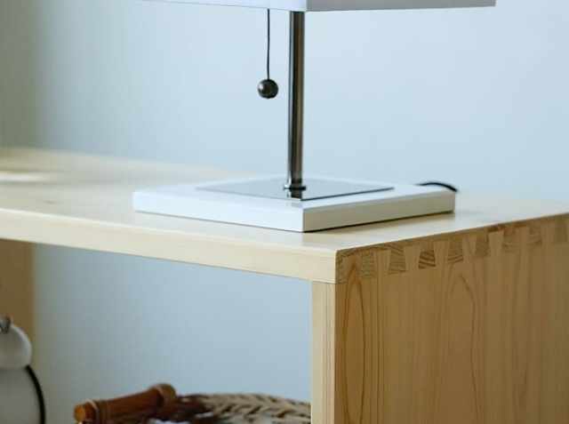 天然木のヒノキの風合いは、デスクランプなどの光に照らされると、さらに深みのある雰囲気を感じることができます。