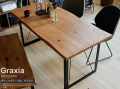 天然木アメリカンオーク無垢材の様々な表情を楽しむことができる幅150cmのダイニングテーブル、Graxia(グラシア)。一枚板風に仕上げたデザインは、荒々しい木感や節などの違いで食卓におしゃれな存在感を与えてくれます。天板には、自然の風合いを活かすオイル塗装仕上げを施し、脚部のフレームには安定感のあるアイアンを使用。無垢材を使った天板とブラックスチールフレームの組み合わせは、北欧テイストからヴィンテージスタイルまで幅広い空間との相性は抜群。使い込むほどに経年変化を楽しむことができるのもポイントですよ♪