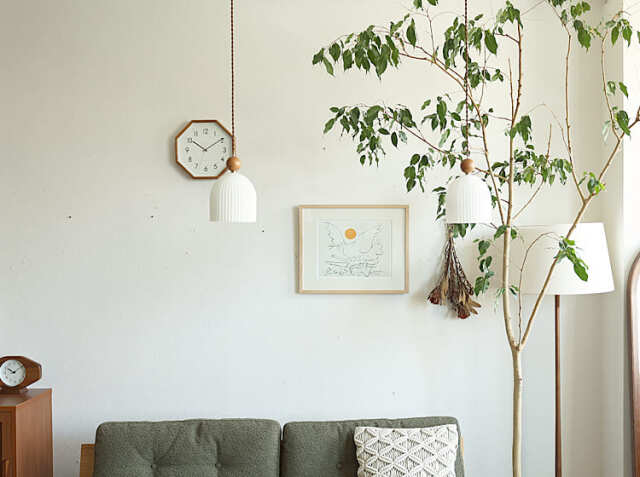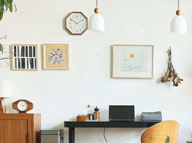 壁掛け以外にも、キャビネットなどの収納棚の上に置くだけでも空間をおしゃれに演出してくれますよ。