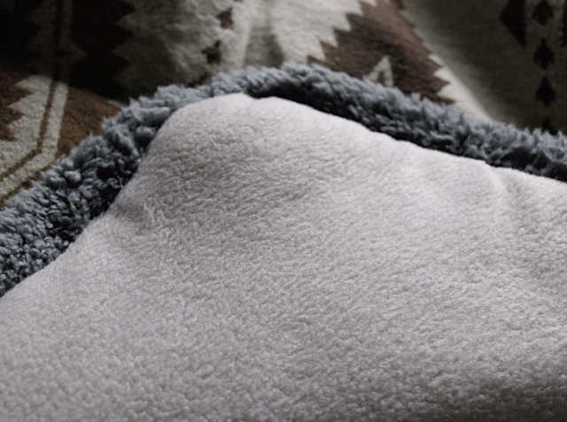 こたつに入って横にになったとき、首元に当たる部分もボアが付いていますので、肌触りがよく、ぬくぬくですよ♪