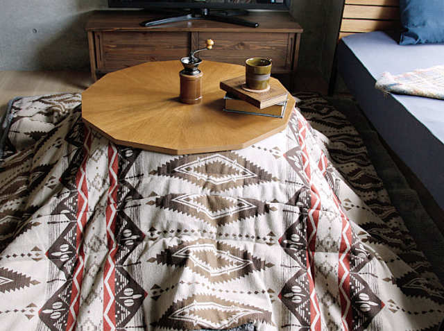 落ち着いたカラーとデザインは、見た目からも暖かなネイティブ柄を取り入れた薄掛けこたつ布団、Horda(ホルダ)。 温もりある表情をした大きめのオルテガ模様が、お部屋に心地よさを与えてくれます。 西海岸やヴィンテージ、ブルックリンスタイルなどのインテリアと相性がよく、メンズライクでカジュアルなお部屋づくりをしていただけます。サイズは190cm×190cm、190cm×230cmの2サイズからお選びください。