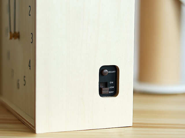 「深夜も鳴り続けるの?」と気になるところ。この時計にはライトコントロールセンサーがついていますので、就寝時などお部屋の灯りを消灯すると自動的に小鳥もお休みしてくれます。また、音量スイッチでお好みで囀りをONとLOWの2つから選ぶことができます。
