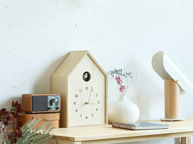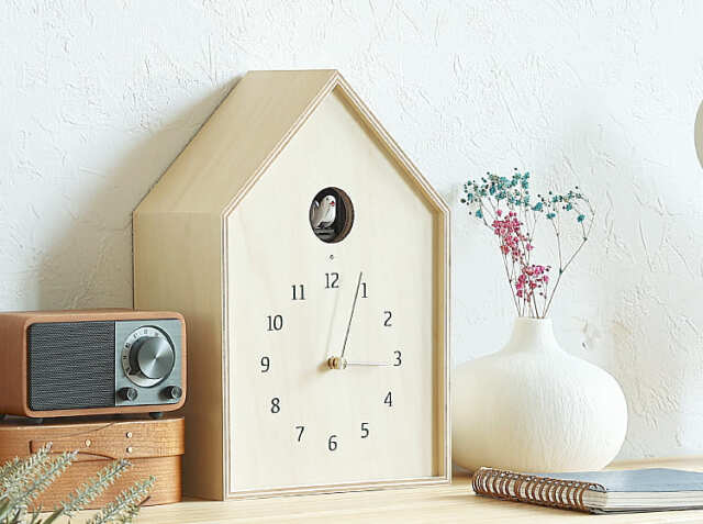 巣箱のような遊び心があるタカタレムノス社のカッコー時計、Birdhouse Clock(バードハウス)。毎時間ごとに、時を告げてくれる癒しのさえずりをお部屋にいかがですか。
