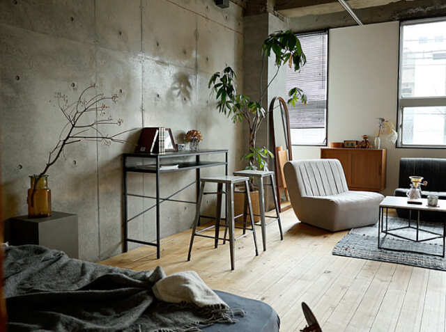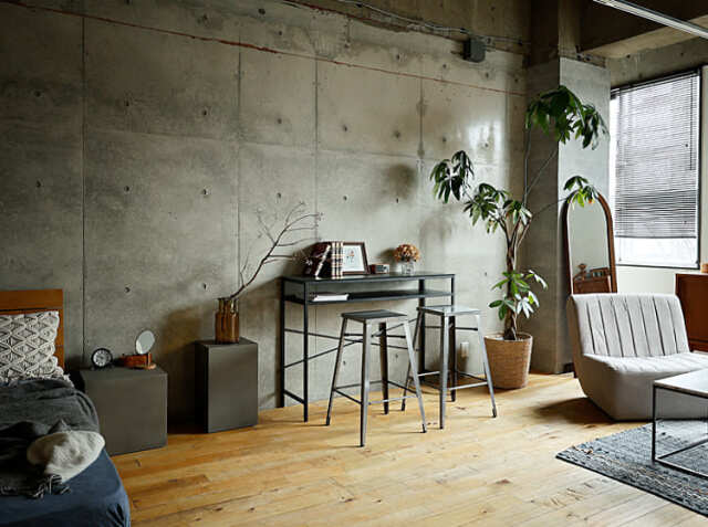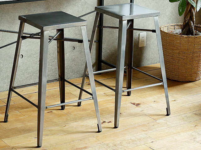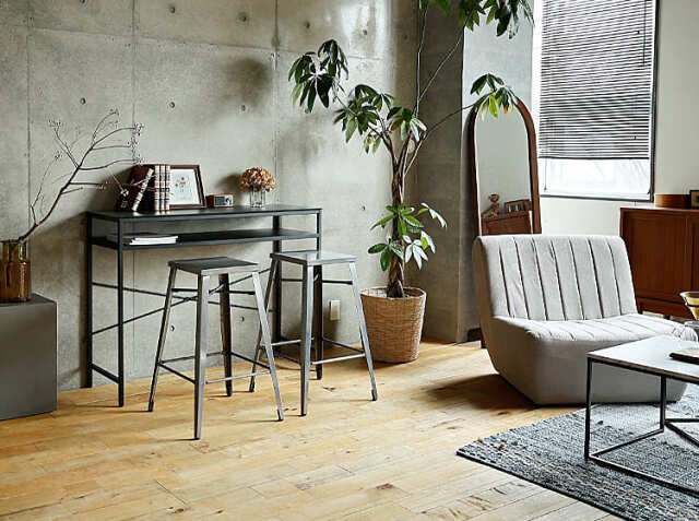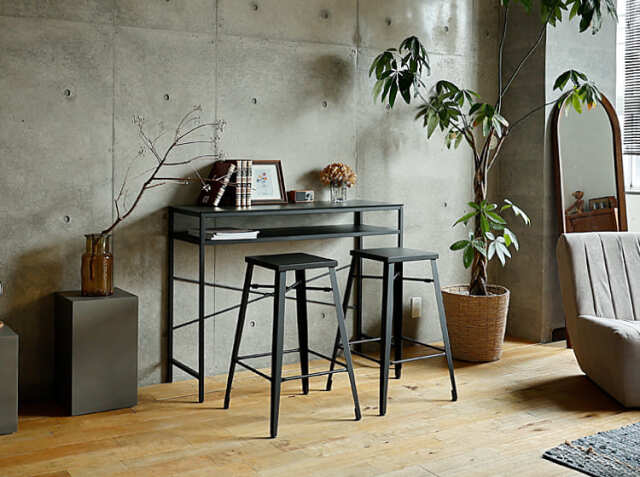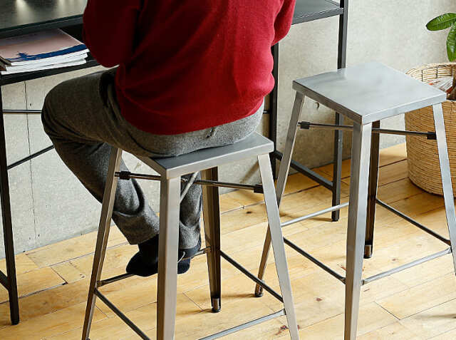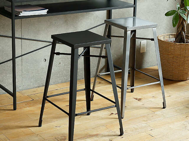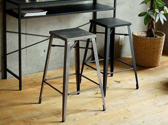 キッチンカウンターやカフェ、バーなどの使用以外にも、少し背の高いデスクに合わせてのご使用もおススメ♪インダストリアル感溢れるコーディネートの出来上がりですね。