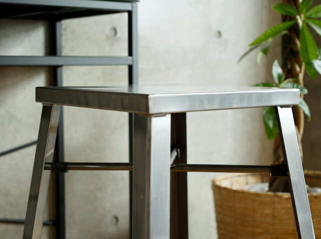 ヴィンテージを追求したデザインとディテールのこだわりが詰まったハイスツール。製造過程でスチールを溶接する溶接跡を残したり、座面の側面をハンマートーン仕上げのようにしたりと細部に至るまでヴィンテージを感じる風合いに仕上げています。