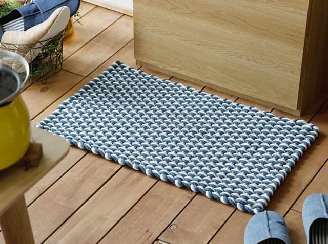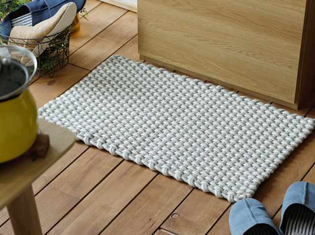 ポリエステル100%のボリューム感のある2色の繊維を丁寧に織り込み、肌触りはサラサラとした感触で、踏み応えのある平織りのマットとなっています。