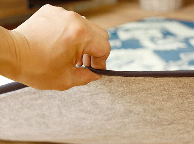裏面は床を傷つけにくいように、ポリエステル100%の不織布を採用しています。