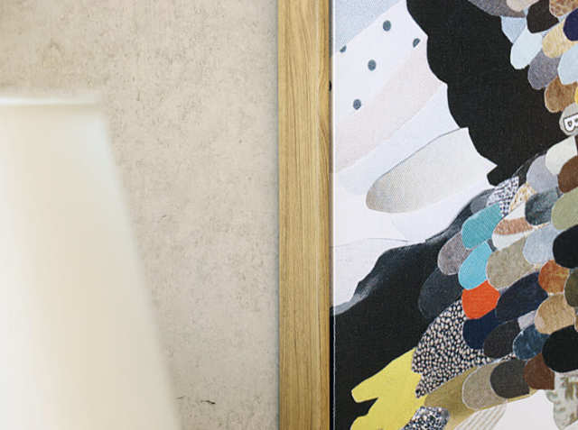 フレームを約5mmとすっきりとした印象に仕上げたフレームインキャンパス仕様。キャンパスだけのアイテムより木目のフレームを使用することで、お部屋の雰囲気を落ち着かせた空間にしてくれますよ。