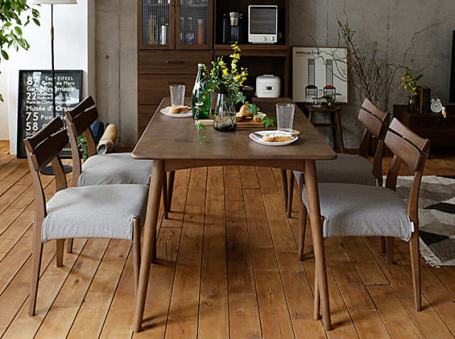 温もりを感じるダイニングコーディネートにぴったりのシリーズ家具。優しい風合いのテーブルとファブリック生地が目を引く、木目を活かしたデザインの家具で全体を統一すれば、まさに温かみと落ち着きを感じるお部屋に。淡い色合いのアイテムを中心にセレクトすると、落ち着いた雰囲気で上品さを感じるリラックス空間に仕上がりますよ。