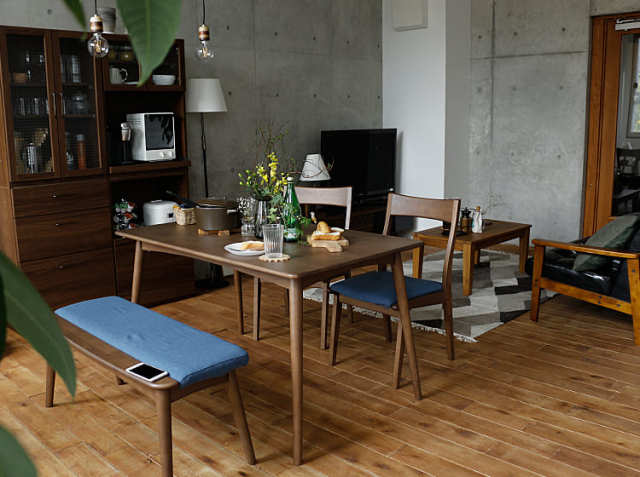 【ダイニングテーブル】 天板:天然木アルダー無垢材(ウレタン樹脂塗装) 脚部:天然木ラバーウッド無垢材(ウレタン樹脂塗装) 【ダイニングチェアーBタイプ・ベンチ】 フレーム:天然木(アルダー材/ウレタン樹脂塗装) 座面張地:不織布 座面中身:ウレタンフォーム カバー:ポリエステル |