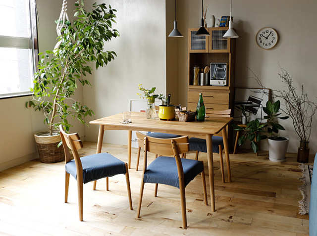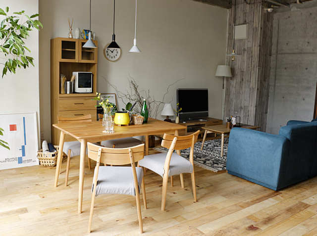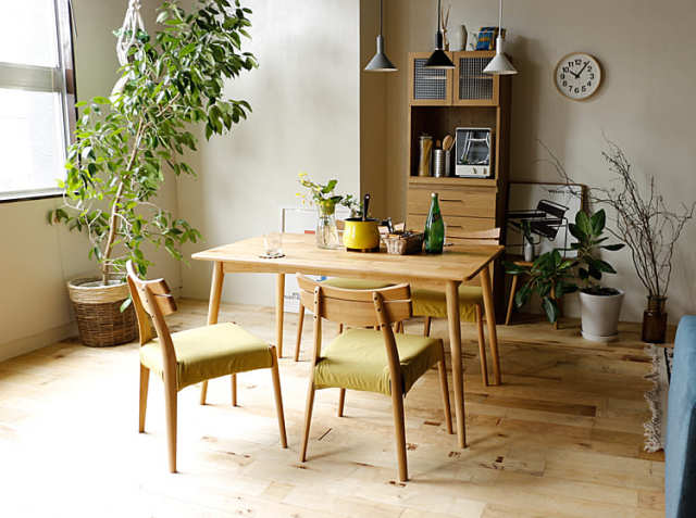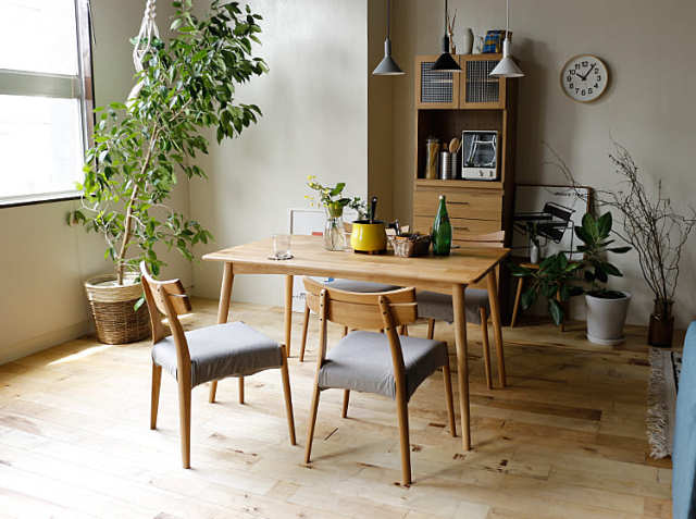 温もりを感じるダイニングコーディネートにぴったりのチェアー。同シリーズの優しい風合いのテーブルに合わせて、木目を活かしたデザインの家具で全体を統一すれば、まさに温かみと落ち着きを感じるお部屋に。淡い色合いのアイテムを中心にセレクトすると、落ち着いた雰囲気で上品さを感じるリラックス空間に仕上がりますよ。