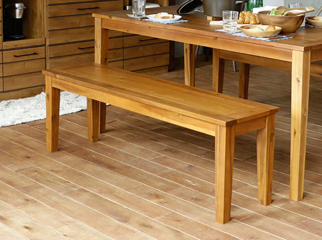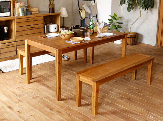 【ダイニングテーブル/ベンチ】 天板/座面:天然木アカシア化粧繊維板、天然木アカシア(オイル塗装) 脚部:天然木アカシア(オイル塗装) |