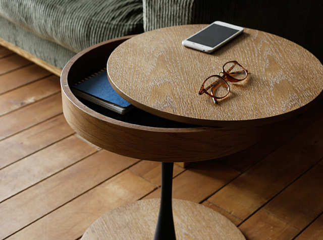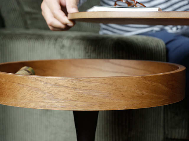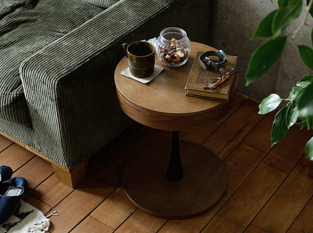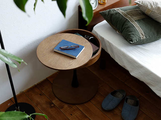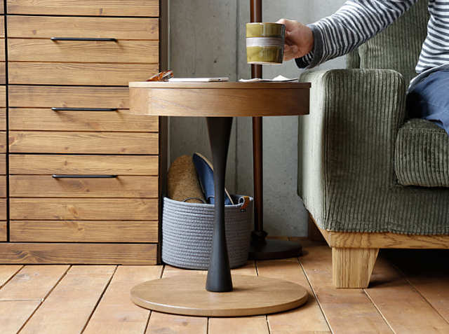 そんな、大切なリラックスタイムをさらに充実させてくれる頼れる相棒が、収納付き円形サイドテーブル PPT3(ピーピーティー3)。