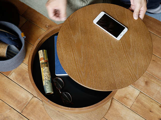 読みかけの雑誌や新聞、リモコンなどリビングにある小物を収納できる収納スペース。収納スペースの内寸は収納スペースの内寸:直径37.5cm×高さ4.5cmとなっています。