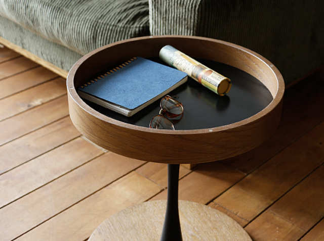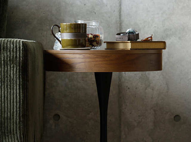 ソファーの横などに置くだけでオブジェのようにお部屋のアクセントになるサイドテーブル。そして天板の下に“隠す収納”ができるスペースを設けることでよりリビングでくつろぐ時間を快適ににしてくれる円形サイドテーブル、PPT3(ピーピーティー3)。