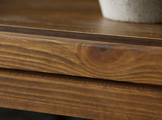 前板部分をよく見ると、アクセントに溝が彫られているのがわかります。無垢材に溝をつけることで表情が豊かな印象に変わる工夫を施しています。