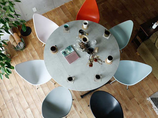あえてバラバラの色でダイニングシーンを演出するのもアリですよね♪