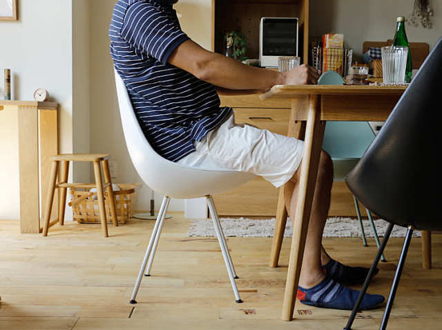床から座面までの高さは、標準的な47cmとなっています。(モデル身長:約175cm)