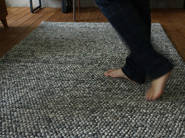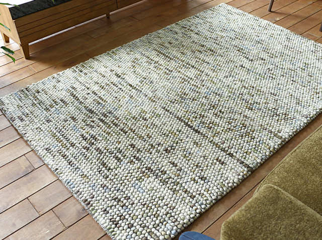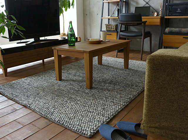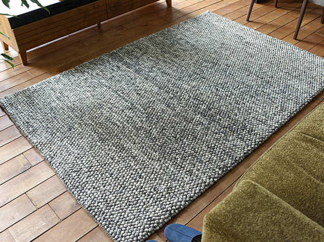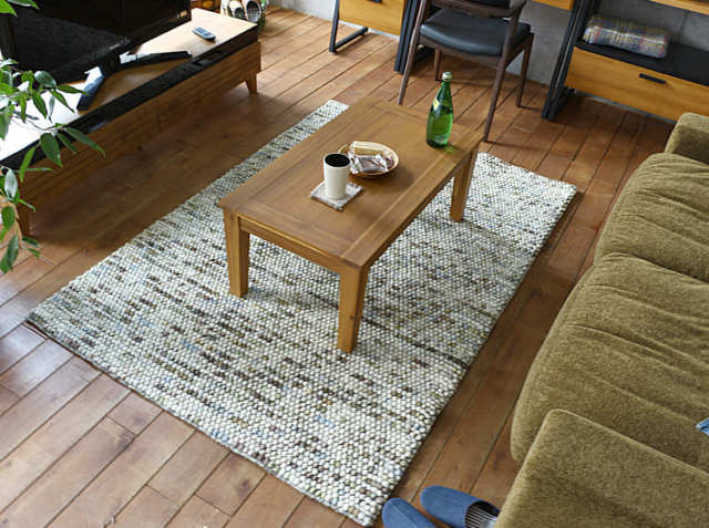 ウール100%の凹凸としたポップコーンのような織りかたをしたラグマットは、手で触ってみると、ふかふかとやわらかな手触りが心地良いだけでなく、見た目の良さを兼ね備えていることがよく分かり、夏は涼しく、冬は温かな1年を通して活躍するアイテムです。