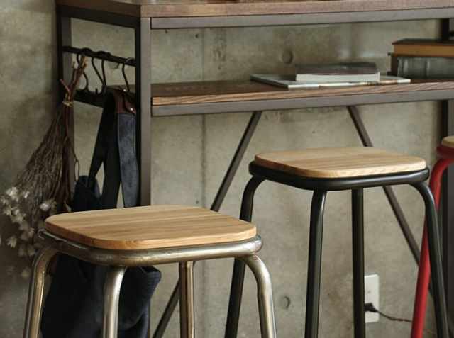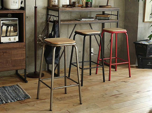 シンプルなデザインは、どんなキッチンカウンターとも相性は抜群。あえて違うカラーを並べての不揃い感もまたかっこいい。床から24cmのところに足置きもついていますので、女性の方でもリラックスしてお座りいただくことができます。