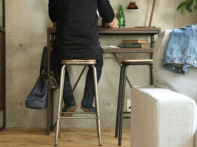 カウンターキッチンに複数台並べて使用することもおすすめですが、壁際にカウンターデスクを置いて、カウンターチェアとして使うのもおすすめ♪
