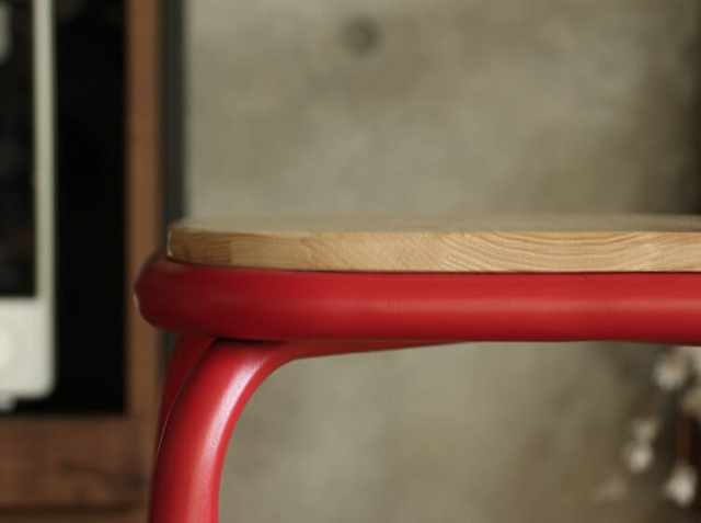 飽きのこない直線的なシンプルなデザインと天然木を使用した座面とスチールの組み合わせが特徴のハイスツール、NOLT(ノルト)。カラーは、お部屋の雰囲気に合わせてシルバーとブラック、レッドの3色からお選びください。