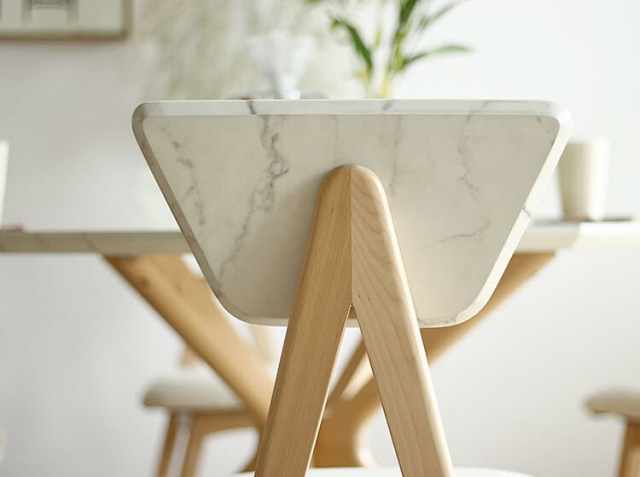 大理石模様をまとったインテリア。シンプルで無駄のない空間に悠然と佇む大理石調デザインと天然木の組み合わせが気品の高さとモダンな雰囲気でお部屋を彩ってくれるダイニングチェア、Collet(コレット)。友人や家族との大切な時間、食後のコーヒータイムまでダイニングでゆっくり寛いでみてはいかがでしょうか。