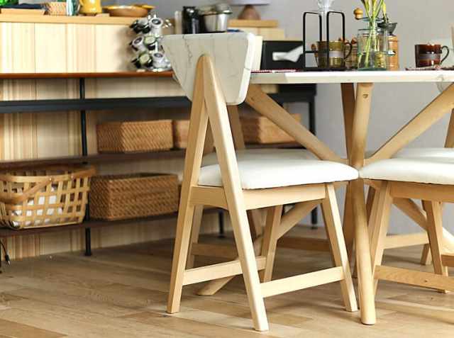 天然木バーチ材とホワイトの座面が雰囲気を和らげて、