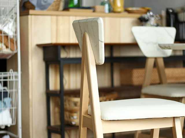 大理石調の背もたれが特徴のダイニングチェア。