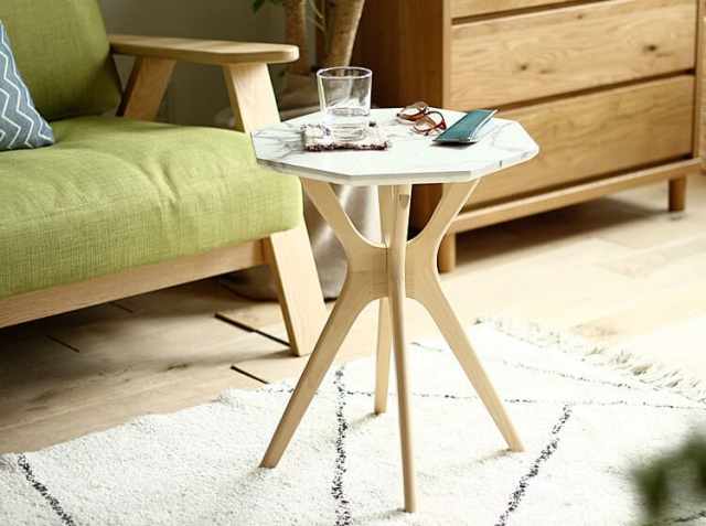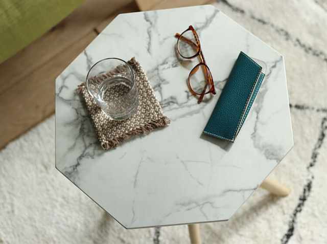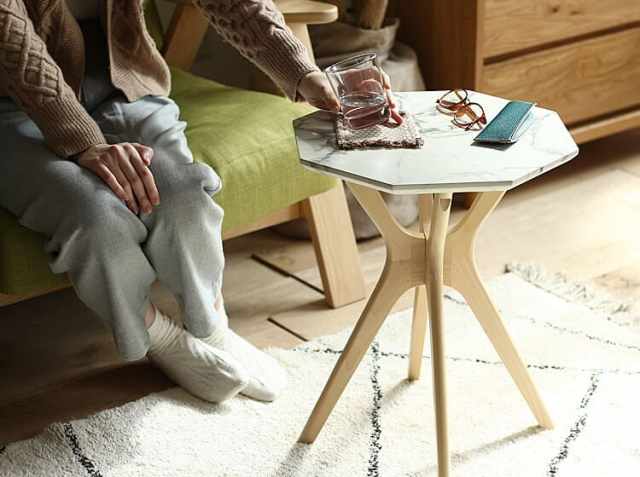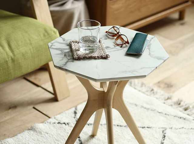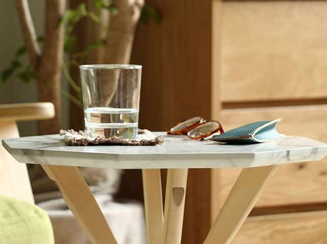 大理石模様をまとったインテリア。シンプルで無駄のない空間に悠然と佇む大理石調デザインと天然木の組み合わせが気品の高さとモダンな雰囲気でお部屋を彩ってくれるサイドテーブル、Collet(コレット)。