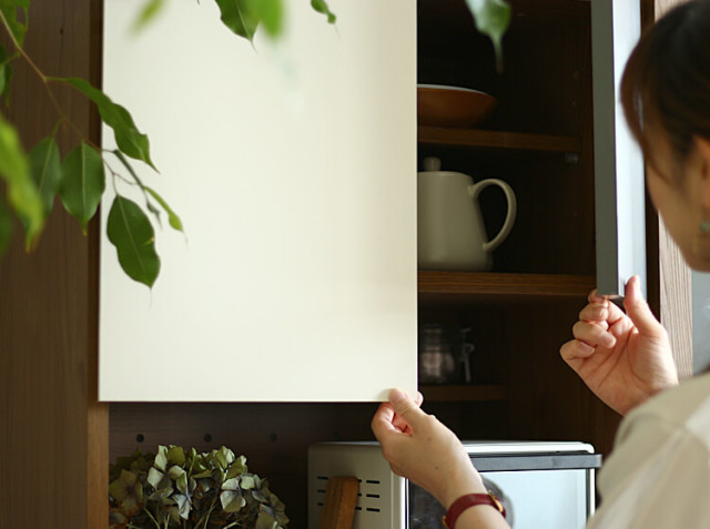 前面には天然木のようなナチュラルな木目が特徴の強化紙化粧板を採用。