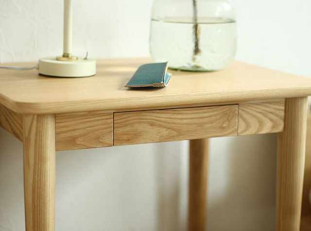 天然木アッシュ材と天板や脚部の丸みを帯びたデザインが、お部屋を優しい雰囲気にしてくれますね。