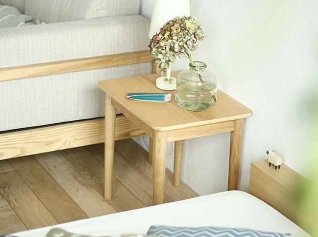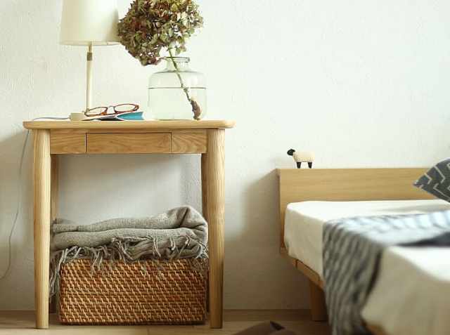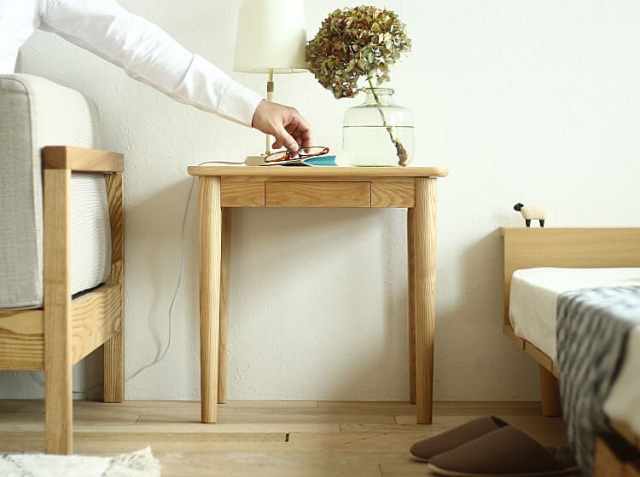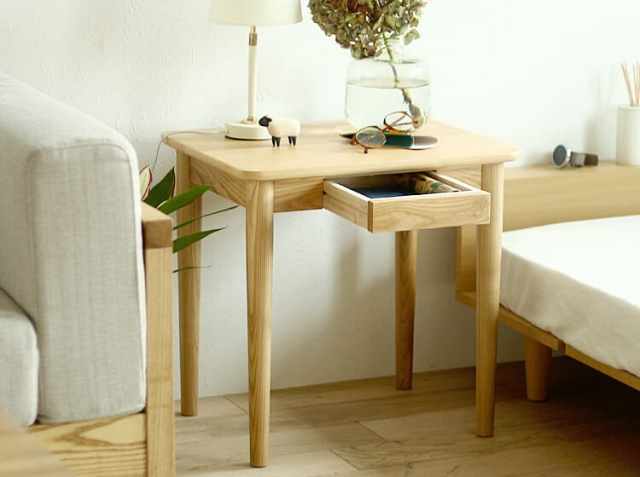 天然木アッシュ材を使った温かみのある引出し付きサイドテーブル、MOTTO(モット)。シンプルなデザインはお部屋の空間にそっと馴染んでくれますよ。