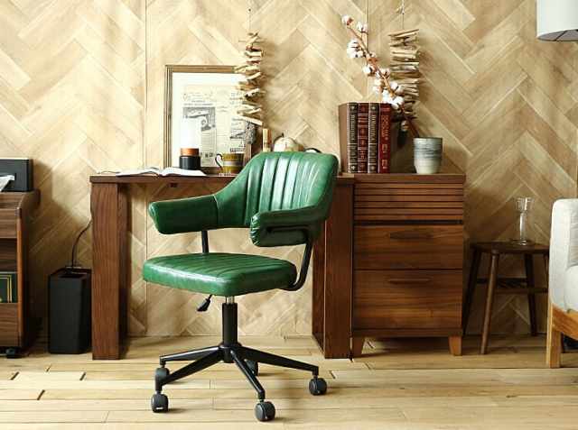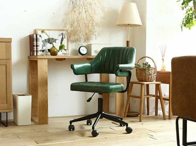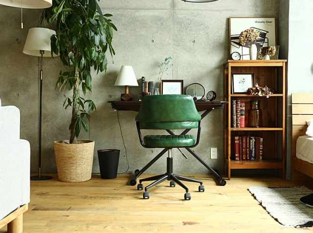 ミッドセンチュリーやモダン、レトロテイストなお部屋などにあわせてコーディネートすることで、落ち着いたワンランク上の印象のスペースを作り上げてくれるグリーンカラー。 実用性とデザイン性を両立した、落ち着きあるレトロザインのデスクチェアですよ。