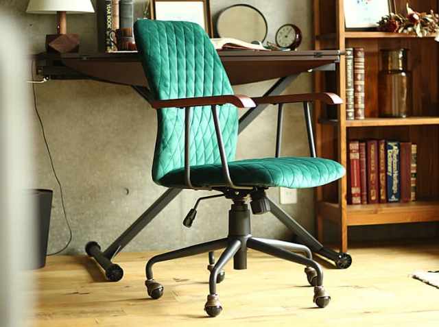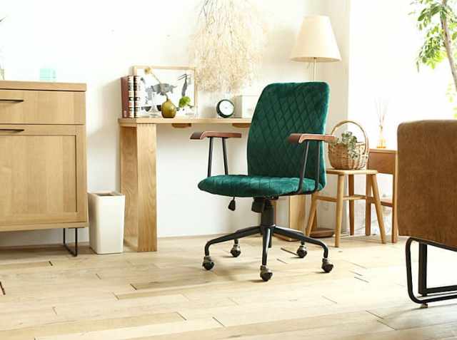 ミッドセンチュリーやモダン、レトロテイストなお部屋などにあわせてコーディネートすることで、落ち着いたワンランク上の印象のスペースを作り上げてくれるグリーンカラー。 実用性とデザイン性を両立した、落ち着きあるレトロザインのデスクチェアですよ。