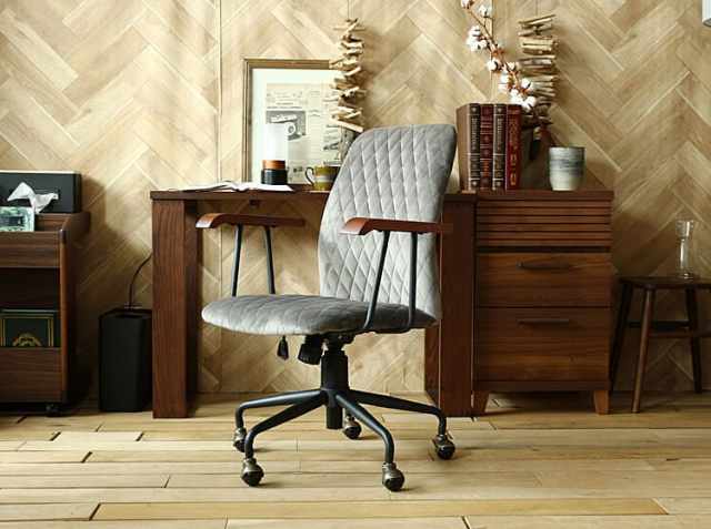 パソコンなどのOA機器や書類などに囲まれ、無機質なイメージになりやすい書斎やワークスペースを一新してくれるのがこちらのチェア。高級感のあるベルベット生地とひじ掛け部分の天然木、スチールの異素材を組み合わせることで上質で洗練されたフォルムが、書斎やワークスペースをセンスアップしてくれるチェアですよ。