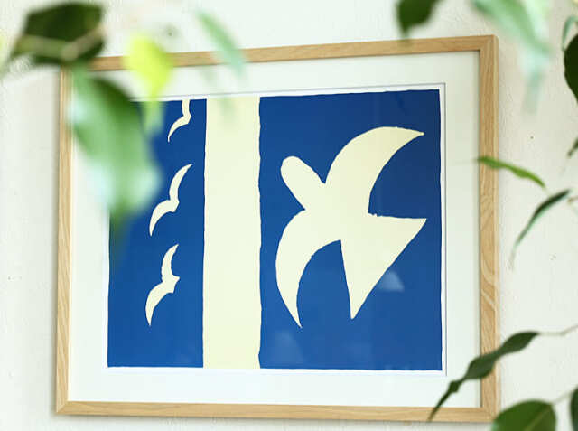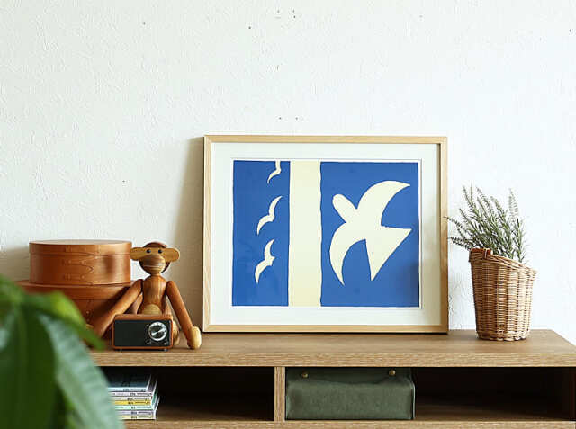 お部屋の印象を決めるアートポスター。大きいポスターを一枚飾るだけでも、お部屋の雰囲気を一気に変えることができます。ピカソとともにキュビズムを生み出した20世紀を代表するジョルジュ・ブラック。1949年頃から盛んに鳥をモチーフとして取り上げ、「鳥」とは知性と感性の間を自由に往来出来る物の象徴的存在で死ぬまで描き続けたという。主張しすぎない素朴なアートとなっていますので、ナチュラルなお部屋からモダンテイストのお部屋までぴったりマッチするポスターですよ♪